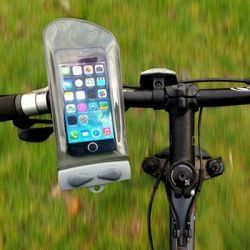 | Drošs un funkcionāls uz velosipēda stūres stiprināms ūdensizturīgais iepakojums mobilajiem telefoniem vai GPS ierīcēm. Iepakojums ir pavisam ērti un viegli piestiprināms - nav nepieciešams izmantot nekādus instrumentus. Pateicoties īpašajam TPU materiālam, caur iepakojumu būs iespējams sarunāties un dzirdēt, turklāt caur to iespējams uzņemt arī video, izmantojot telefona priekšējo kameru (Piezīme: velosipēda stūres stiprinājums neļauj uz iepakojuma izvietot fotoaparāta objektīva logu iepakojuma aizmugurē).