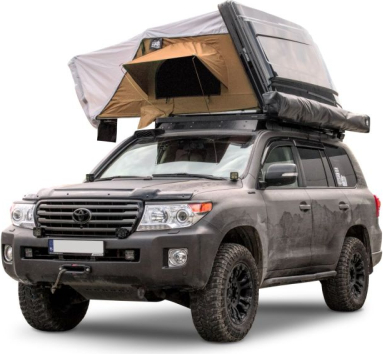 Technical data: Tent dimensions: 210 x 210 x 100 cm (L x W x H) Folded tent dimensions: 210 x 125 x 25 cm (L x W x H) Weight: 75 kg Color: sand/gray Shell color: black Mattress dimensions (in the wider part): 205 x 190 x 4 cm (length x width x height) Maximum static load [when standing]: 350 kg Mounting brackets included: fits car crossbars up to 3 cm high and 9 cm wide Designed for 4 people Material: a mixture of cotton and polyester with a density of 280G (PU 2000mm) Material: Flysheet: Oxford 420D (PU 2000-3000mm) Substrate: insulating aluminum plates made using "honeycomb" technology Mattress: non-deforming Memory Foam sponge Telescopic ladder: aluminum and plastic Cover: ABS plastic Extras: telescopic ladder, shoe pocket, possibility of purchasing a roof or kitchenette, LED lighting for connecting to a Power Bank | ||||||||||||||||||