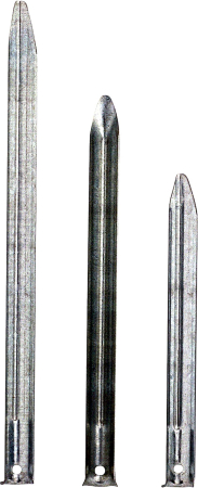 Cinkots tērauds. Standarta tērauda mietiņi ar asu galu.