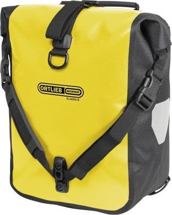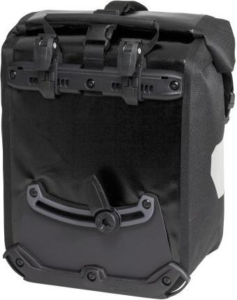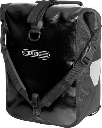 Klasiska dizaina velosomu pāris, kas paredzēts stiprināšanai gan uz priekšējā, gan aizmugurējā velosipēda bagāžnieka.