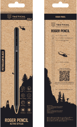 | Ko neatceries, pieraksti! Krāsojiet visu, kas jums ienāk prātā! Un ļaujiet savai iztēlei spīdēt, it kā jūs krāsots uz papīra. Iepazīstinām ar Tactical Roger Pencil. Skārienspalva ar diviem režīmiem. Pirmais, kas īpaši izstrādāts priekš iPad un otrais režīms citiem planšetdatoriem un tālruņiem. Mirkšķināšanas ātrums Tik ātri Tactical Roger Pencil tiek izveidots pārī ar jūsu ierīci. Koncentrējieties uz savu radošumu a domāšanas procesi. Nedomājiet par nevajadzīgām lietām. Domā taktiski! Precizitāte Viņš ir displeja draugs. Pieskāriens ar displeju ir precīzs līdz pikselim, nekas nekur nepazūd un reaģē ar nulles aizkaves reakcija. Lietojot to, saglabājiet mieru un novietojiet roku uz skārienekrāna. Displejs uz to nereaģēs. Pielāgojiet līnijas biezumu, un jums nav nepieciešams zīmuļu asināmais. Palieciet aktīvs Tactical Roger Pencil darbojas pēc aktīvās tehnoloģijas principa. Tas nozīmē, ka saderīgā ierīces, varat izmantot spiedienu un citas funkcijas. Tas ir pilnīgi intuitīvs un lieliski simulē rakstīšanu a zīmēšana uz papīra. Unikāls dizains Tik smagi, cik tam jābūt. Pietiekami liels, lai simulētu īstu pildspalvu. LED indikators Tě neatstāj noskaņojumu un parāda atlikušo akumulatora jaudu. Vienkāršs dubultskāriens ieslēdz pildspalvu, izslēdziet vai pārslēdziet iPad režīmu. Pateicoties magnētiskajam korpusam, pildspalvu var viegli piestiprināt pie iPad vai uz citiem planšetdatoriem. LED krāsas Tactical Roger Pencil vienmēr informēs jūs par notiekošo. Zaļā gaisma nozīmē režīmu uz a gatavs lietošanai iPad ar visām funkcijām. Vēlreiz pieskaroties skārienpogai, tas iedegas zila gaisma. Tas aktivizē universālo režīmu. Tagad pildspalvu var izmantot jebkurā ierīcē. Sarkans gaisma norāda uzlādi. Kad tas ir pilnībā uzlādēts, sarkanā gaisma nodzisīs. Neatvairāmi izturīgs Šeit, Tactical, mēs rūpējamies, lai viss ilgst. Skārienpildspalva šajā kategorijā piedāvā tikai šo labākais. iPad režīms, aktīvā tehnoloģija, luksusa alumīnija konstrukcija, magnētisks rokturis, nomaināms uzgalis ar ļoti smalku spēka reakciju, ko izmanto tikai labākie modeļi tirgū un many citas funkcijas. Tas piedāvā viedo enerģijas taupīšanas režīmu – tas nozīmē gadu bez raizēm. Un astoņu stundu pulkstenis v jūs varat paveikt darbu ar vienu uzlādi. BE ECO Mēs Tactical mīlam dabu. Visi mūsu produkti ir iepakoti EKO kastēs z pārstrādātu papīru, lai pēc iespējas mazāk ietekmētu vidi. Padomā taktiski! |