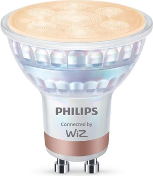 Philips WiZ GU10 smart bulbs bring adjustable white light and smart control to your home. These elegant, glass-bodied spotlights fit standard fixtures and connect directly to your Wi-Fi—no hub required.