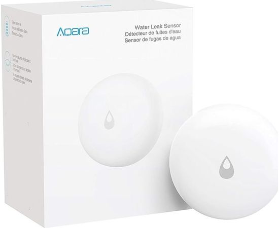 Aqara Water Leak Sensor - water level / water leak detector, can be placed under the washing machine, detects water level from 0.5mm, wireless, ZigBee 3.0 protocol (must be connected to the Aqara Hub), battery CR2032 included, up to 2 years, support for Apple HomeKit, Google Assistant, Amazon Alexa, can be used to automate activities in the home - when water is detected, sends a notification to the phone, stops the electronic water supply etc. Waterproof IP67.