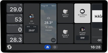 Stable connectivity and communicationWith dual-band Wi-Fi 6 (2.4 GHz and 5 GHz) and Bluetooth 5.0, the Shelly Wall Display X2i provides fast pairing and reliable communication with other devices. The maximum communication range is up to 30 m indoors and 50 m outdoors, depending on local conditions.