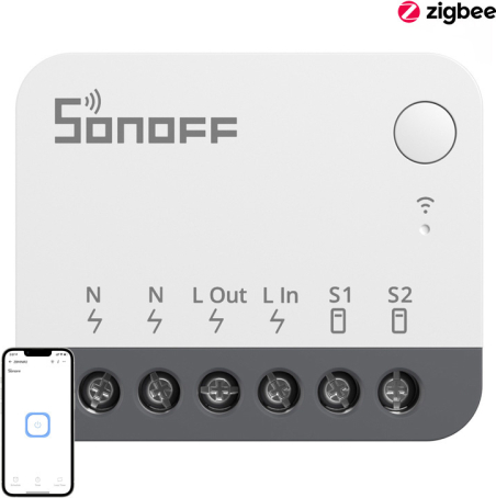SONOFF ZBMINIR2 smart ZigBee mini switchSONOFF ZBMINIR2 is a smart switch with a compact form and powerful functionality. Solutions such as wide ZigBee range, flexible support for external switches, detach mode and device protection make it a perfect product for modern automated homes. Secure, reliable and compatible with multiple smart home ecosystems - ZBMINIR2 is a step towards the future of smart home management.