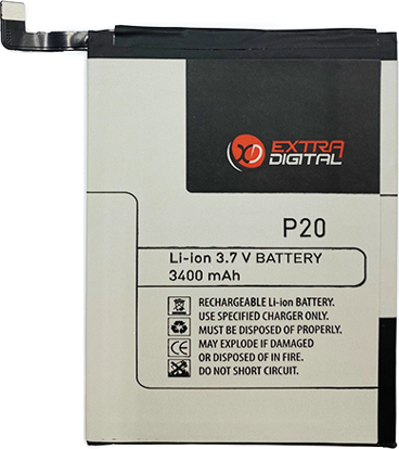 | Load faster - use longer - feel safer! High quality Extra Digital lithium ion batteries with shorter charging time and longer battery life. Battery replaces the original: Huawei P20 Technical specification: Capacity: 3400 mAh Type: Li-polymer Voltage: 3.7 V Note: The list of compatible batteries and phones may be incomplete. Warranty: 12 months. Manufacturer: Extra Digital, EU |