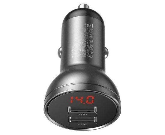 Baseus Digital Display Dual USB 4.8A Car Charger 24W Grey