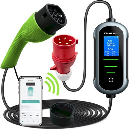 Qoltec 52437 Elektriskās automašīnas lādētājs 22 kW / 400 V / 7m kabelis