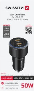 Swissten PD 2x USB-C Automašīnas Lādētājs 50W