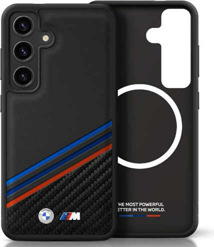 BMW Leather Tricolor Stripe with MagSafe Aizmugurējais Apvalks priekš Samsung Galaxy S25