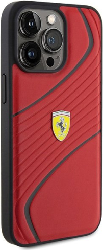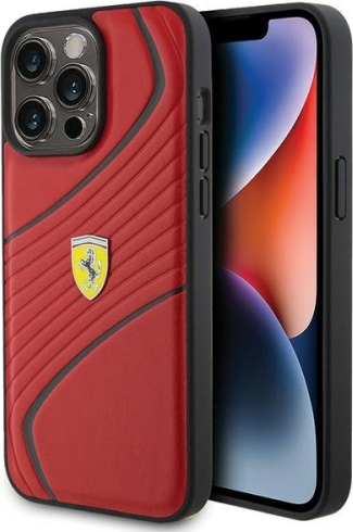 Ferrari Twist Metal Logo Back Case Aizsargapvalks Priekš Apple iPhone 15 Pro Max