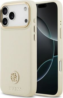 Guess Apple iPhone 17 Pro Max Silicone case with MagSafe Grained Strass Logo Beige
