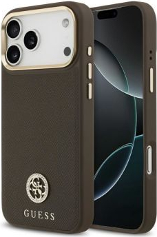 Guess Apple iPhone 17 Pro Max Silicone case with MagSafe Grained Strass Logo Brown