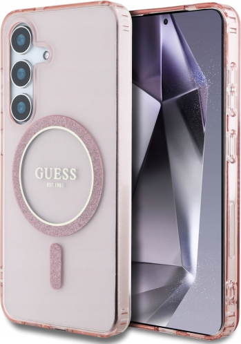 Guess Glitter Circle Classic Logo MagSafe Aizsargapvalks Priekš Samsung Galaxy S25