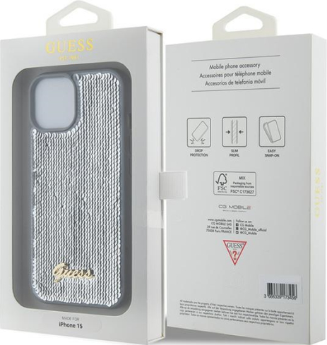 Guess HC Sequin Script Metal Case Aizsargapvalks Priekš Apple iPhone 15 Pro