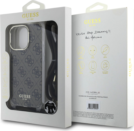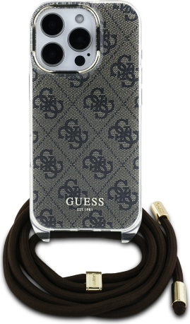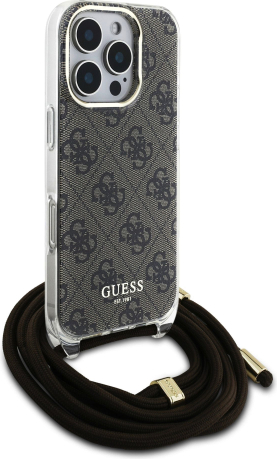 Guess IML 4G Printed Crossbody Strap Case Aizsargapvalks priekš iPhone 16 Pro / brūns