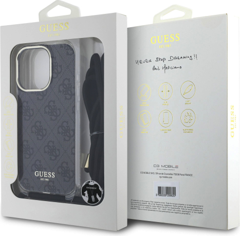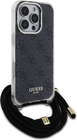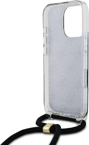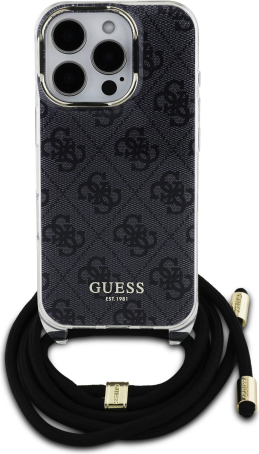 Guess IML 4G Printed Crossbody Strap Case Aizsargapvalks priekš iPhone 16 Pro / melns
