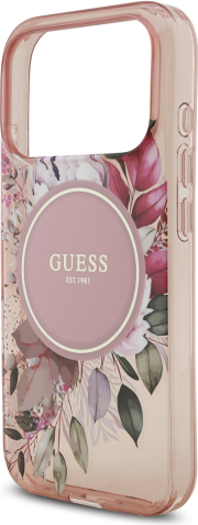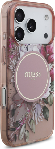 Guess IML Flowers Strap MagSafe Case Aizsargapvalks priekš iPhone 17 Pro / rozā