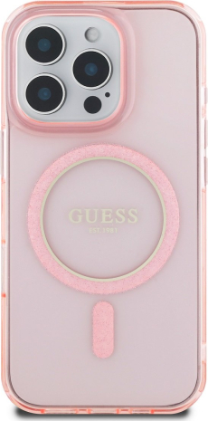Guess IML Glitter Ring MagSafe Case Aizsargapvalks priekš Apple iPhone 16 Pro Max