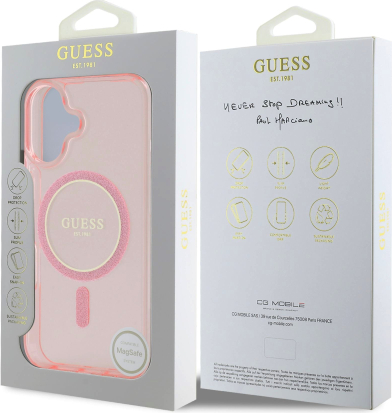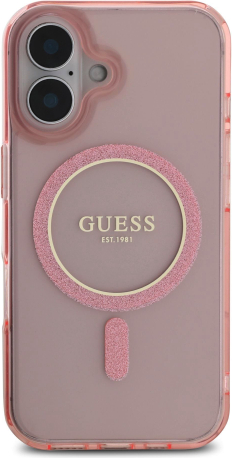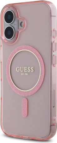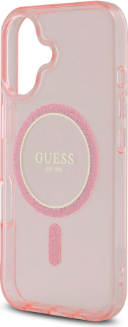 Guess IML Glitter Ring MagSafe Case Aizsargapvalks priekš iPhone 16 / rozā