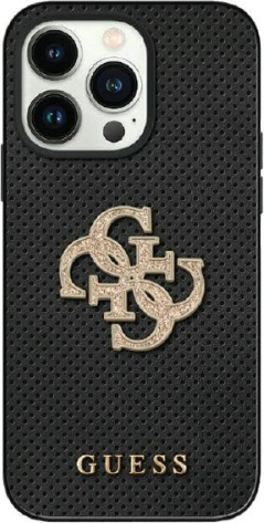 Guess Leather Perforated 4G Glitter Logo Back Case Aizsargapvalks Priekš Apple iPhone 15