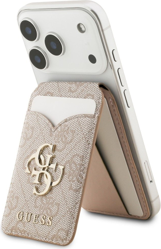 Guess MagSafe Maks ar Statīvu un Spoguli 4G, Rozā ir stilīga un funkcionāla maks‑somina ar MagSafe magnētisko stiprinājumu tālruņiem, ar ādas pārklājumu rozā krāsā; ietver kredītkaršu nodalījumu, naudas vai vizītkartes nodalījumu, iebūvētu spoguli ātrai izskata pārbaudei un statīva funkciju ērtai video skatīšanai vai zvaniem; magnētiskā piestiprināšanas sistēma nodrošina drošu fiksāciju, viegli uzliekama un noņemama, netraucē bezvadu uzlādei; apvieno stilu, praktiskumu un izturību, ideāli piemērota ikdienas lietošanai, ceļojumiem un biznesa tikšanām; kompakta, viegla, ērti pārnēsājama somā vai kabatā. |
