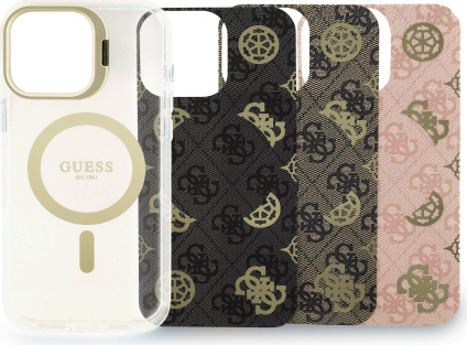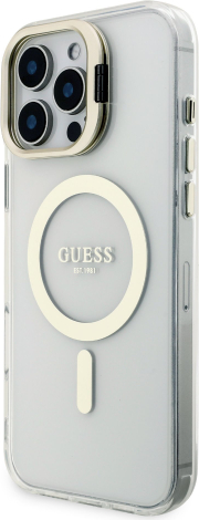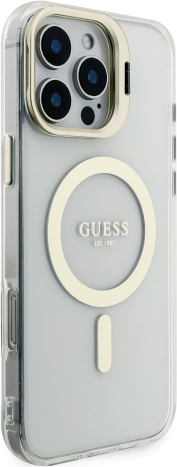 Guess PC/TPU Electroplated Stand Camera Frame MagSafe Case with Interchangeable Backgrounds for iPhone 16 Pro / Max