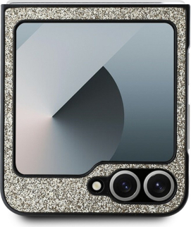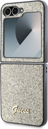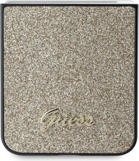 Guess PC/TPU Glitter Flakes Metal Logo Case Aizsargapvalks priekš Samsung Galaxy Z Flip 6/7 FE / zelts