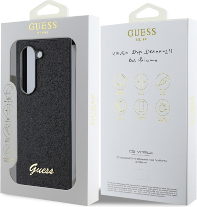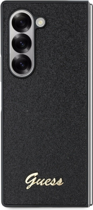 Guess PC/TPU Glitter Flakes Metal Logo Case Aizsargapvalks priekš Samsung Galaxy Z Fold 6 / melns