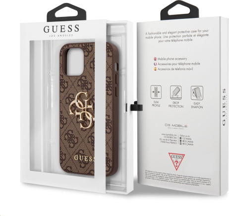Guess PU 4G Metal Logo Case Aizsargapvalks priekš iPhone 12/12 Pro / brūns