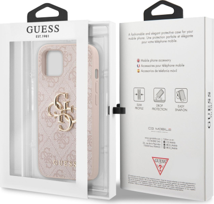 Guess PU 4G Metal Logo Case Aizsargapvalks priekš iPhone 13 / rozā