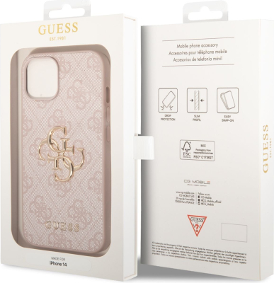 Guess PU 4G Metal Logo Case Aizsargapvalks priekš iPhone 14 / rozā