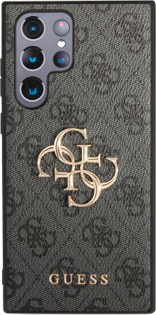 Guess PU 4G Metal Logo Case Aizsargapvalks priekš Samsung Galaxy S23 Ultra / pelēks