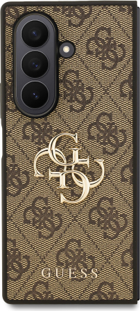 Guess PU 4G Metal Logo Case Aizsargapvalks priekš Samsung Galaxy Z Fold 7 / brūns
