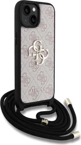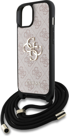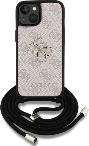 Guess PU 4G Metal Logo Crossbody Strap Case Aizsargapvalks priekš iPhone 15 / rozā