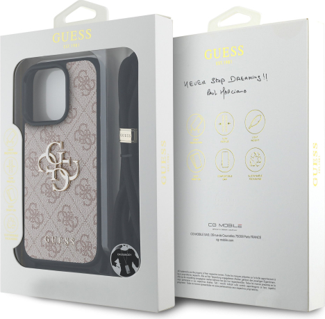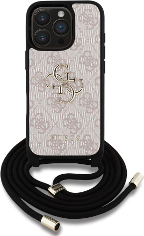 Guess PU 4G Metal Logo Crossbody Strap Case Aizsargapvalks priekš iPhone 16 Pro Max / rozā