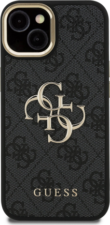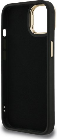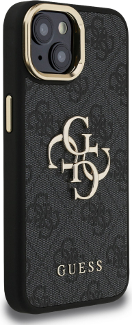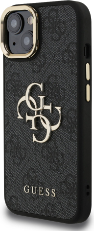 Guess PU 4G Metal Logo Stand Camera Frame Case Aizsargapvalks priekš iPhone 13 / melns