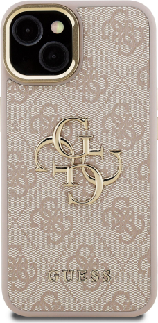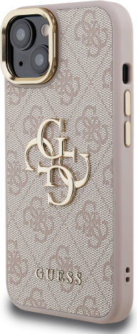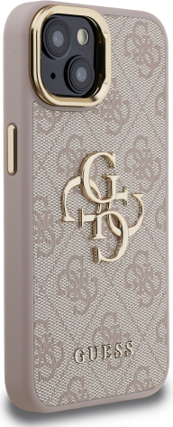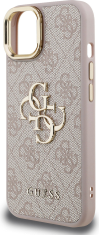 Guess PU 4G Metal Logo Stand Camera Frame Case Aizsargapvalks priekš iPhone 14 / rozā