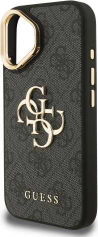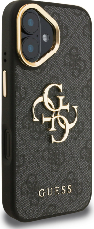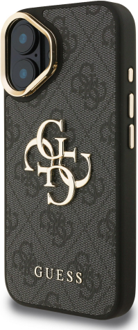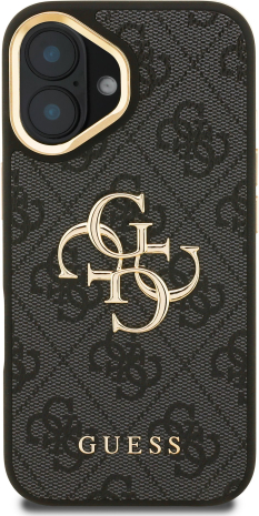 Guess PU 4G Metal Logo Stand Camera Frame Case Aizsargapvalks priekš iPhone 16 / melns
