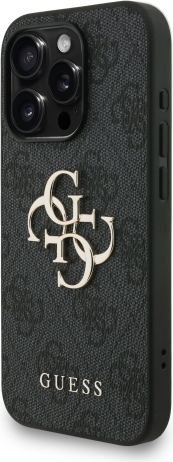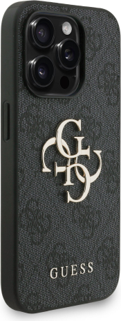 Guess PU 4G Metal Logo Strap Case Aizsargapvalks priekš iPhone 15 Pro Max / melns