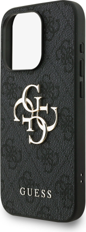 Guess PU 4G Metal Logo Strap Case Aizsargapvalks priekš iPhone 15 Pro / melns