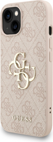 Guess PU 4G Metal Logo Strap Case Aizsargapvalks priekš iPhone 15 / rozā