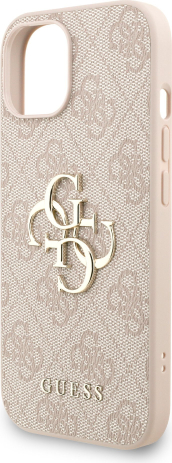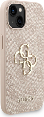 Guess PU 4G Metal Logo Strap Case Aizsargapvalks priekš iPhone 15 / rozā