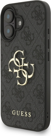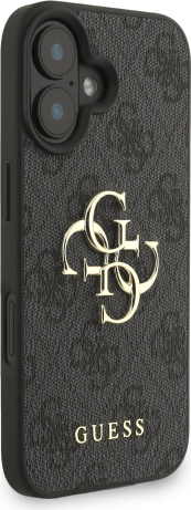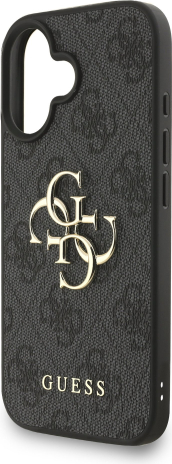 Guess PU 4G Metal Logo Strap Case Aizsargapvalks priekš iPhone 16 / melns