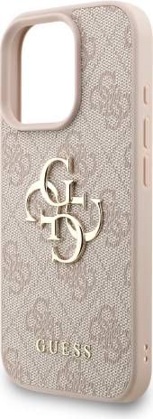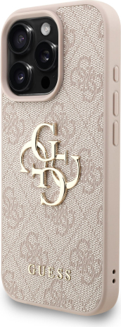 Guess PU 4G Metal Logo Strap Case Aizsargapvalks priekš iPhone 16 Pro Max / rozā