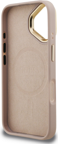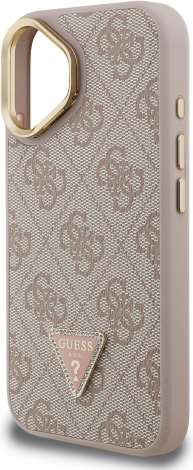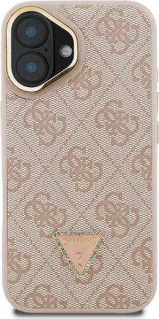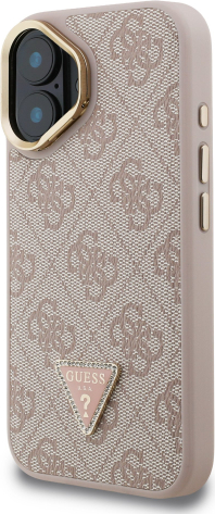 Guess PU 4G Strass Triangle Logo Stand Camera Frame MagSafe Case Aizsargapvalks priekš iPhone 16 / rozā