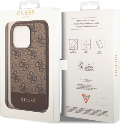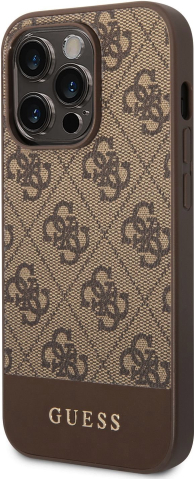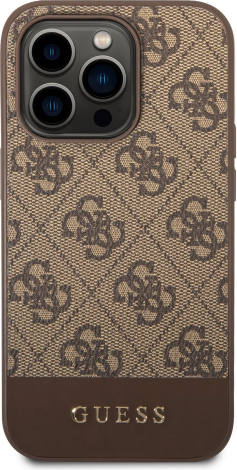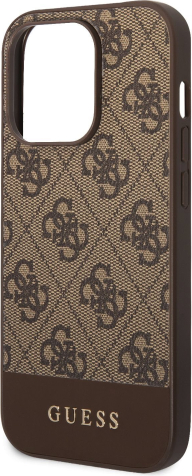 Guess PU 4G Stripe Case Aizsargapvalks priekš iPhone 14 Pro Max / brūns