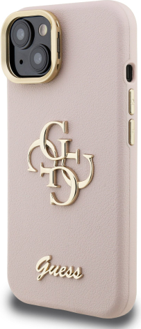 Guess PU Grained 4G Logo Stand Camera Frame Case Aizsargapvalks priekš iPhone 13 / rozā