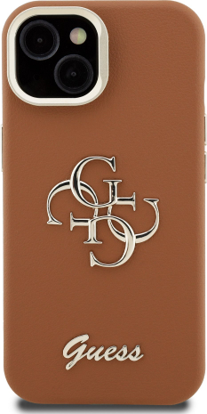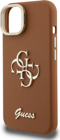 Guess PU Grained 4G Logo Stand Camera Frame Case Aizsargapvalks priekš iPhone 14 / brūns