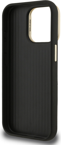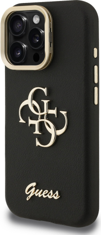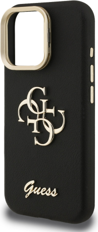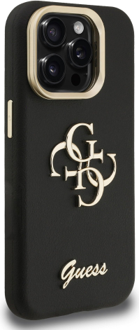 Guess PU Grained 4G Logo Stand Camera Frame Case Aizsargapvalks priekš iPhone 15 Pro / melns